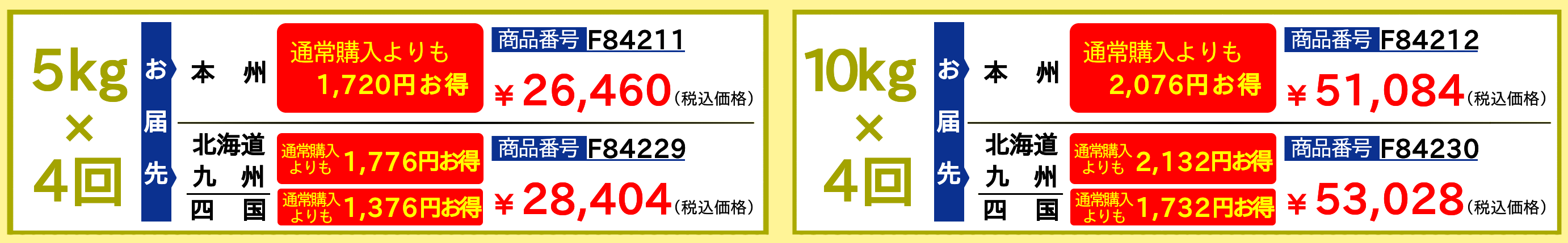 定量コースはご注文時点で規定回数分(規定㎏数)が確保されますので、コース途中での在庫不足や価格高騰などの心配はありません。